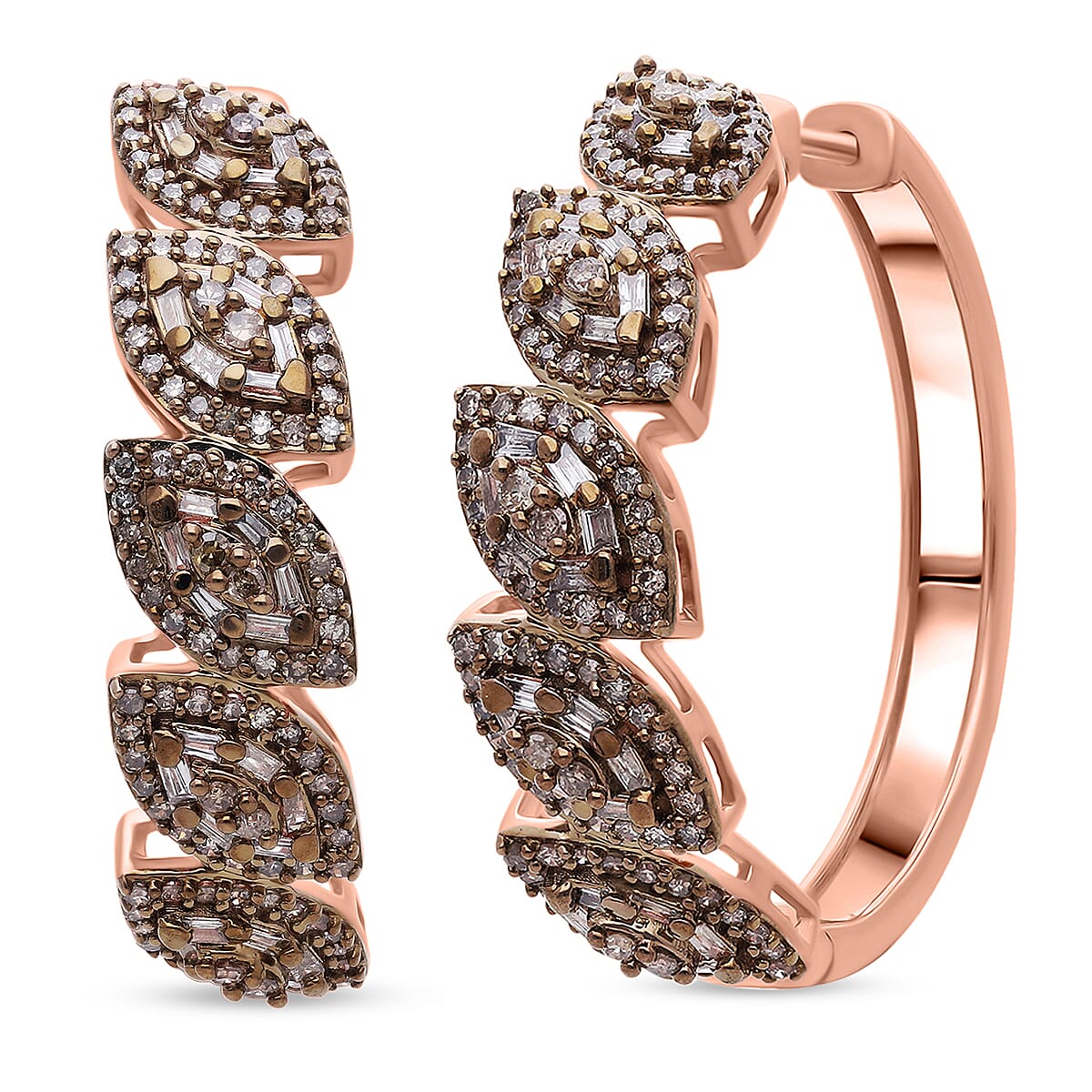 D'Joy Natural Champagne Diamond 1.50 ctw Flowing Vine Earrings in Rhodium Over Sterling Silver