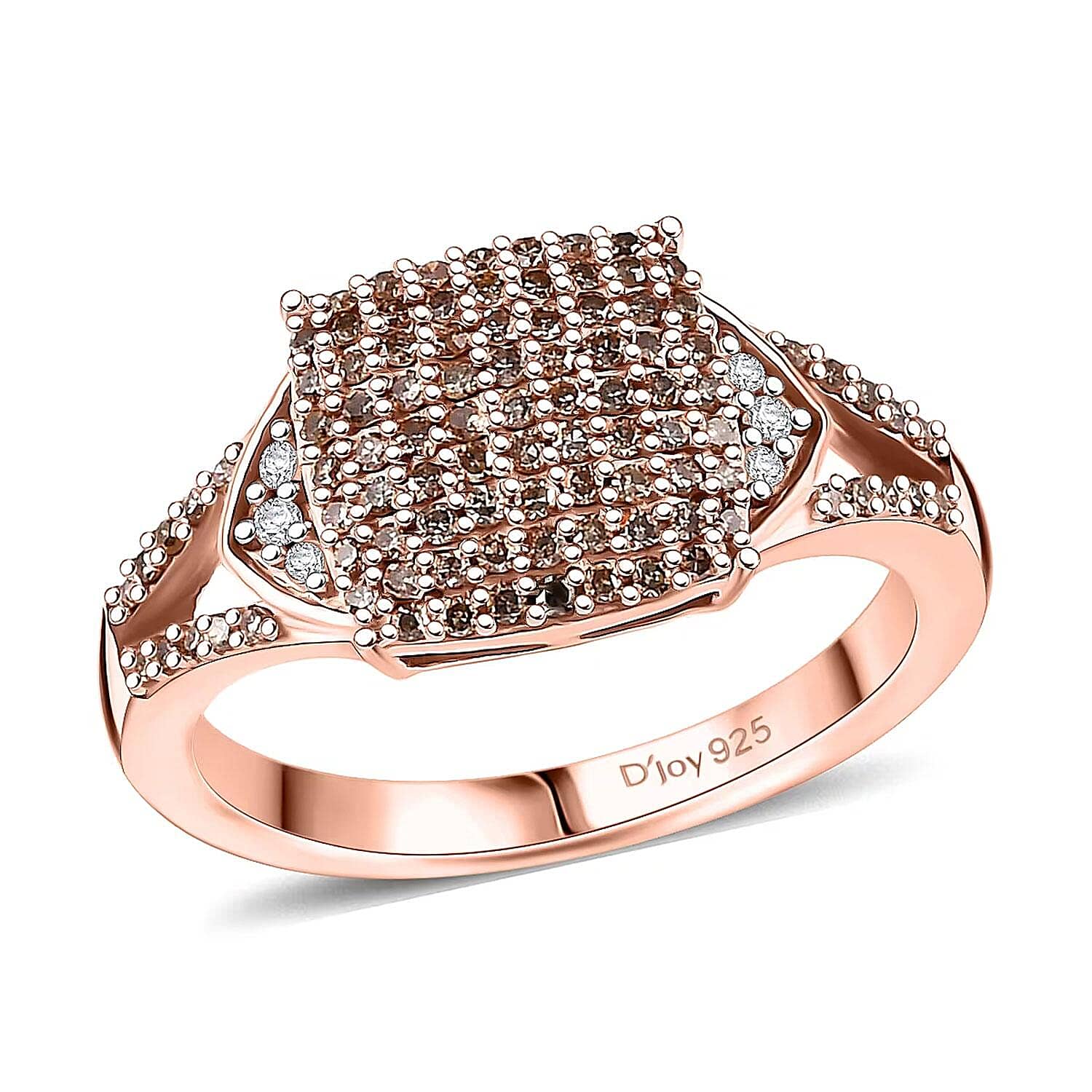 D'Joy Natural Champagne Diamond, White Diamond Split Shank Ring in Vermeil RG Over Sterling Silver 0.50 ctw (Size 5.0)