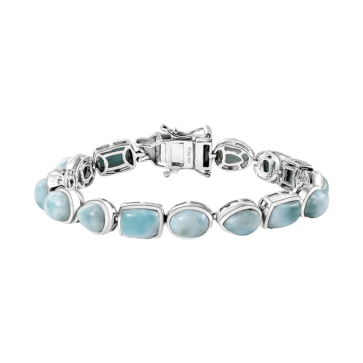 D'Joy Natural Green Larimar 30.25 ctw Starfish Bracelet in Rhodium Over Sterling Silver (8.00 In)