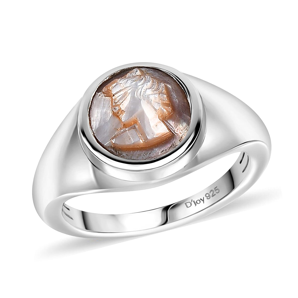D'Joy Natural Italian Conch Cameo 1.80 ctw Mens Ring in Rhodium Over Sterling Silver (Size 12.0)