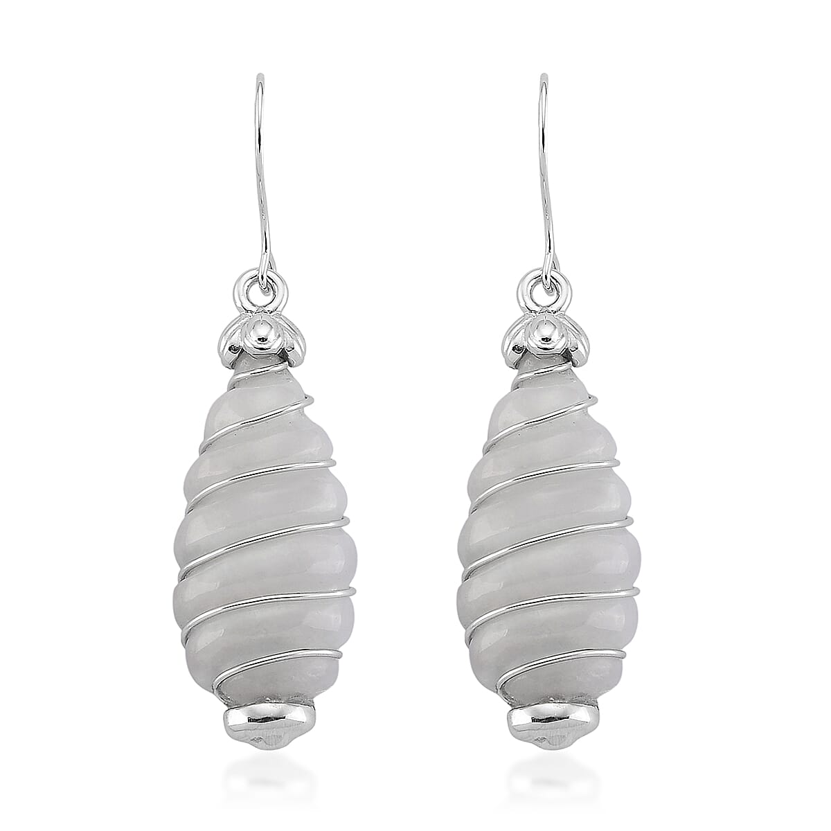 D'Joy Natural Jade 31.00 ctw Carved Dangle Earrings in Rhodium Over Sterling Silver
