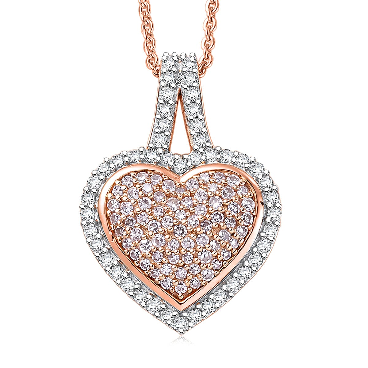 D'Joy Natural Pink and White Diamond I3 0.50 ctw Timeless Love Pendant Necklace in 18K Vermeil Rose Gold Over Sterling Silver 20 Inches