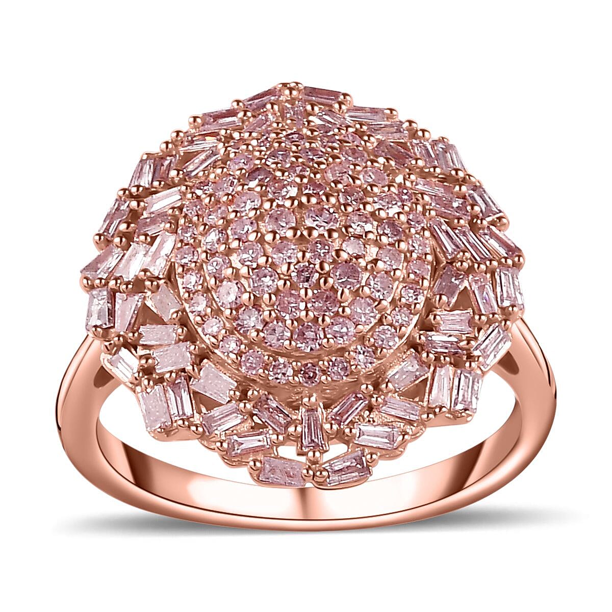 D'Joy Natural Pink Diamond I3 1.00 ctw Lightburst Ring in 18K Vermeil Rose Gold Over Sterling Silver (Size 7.0)