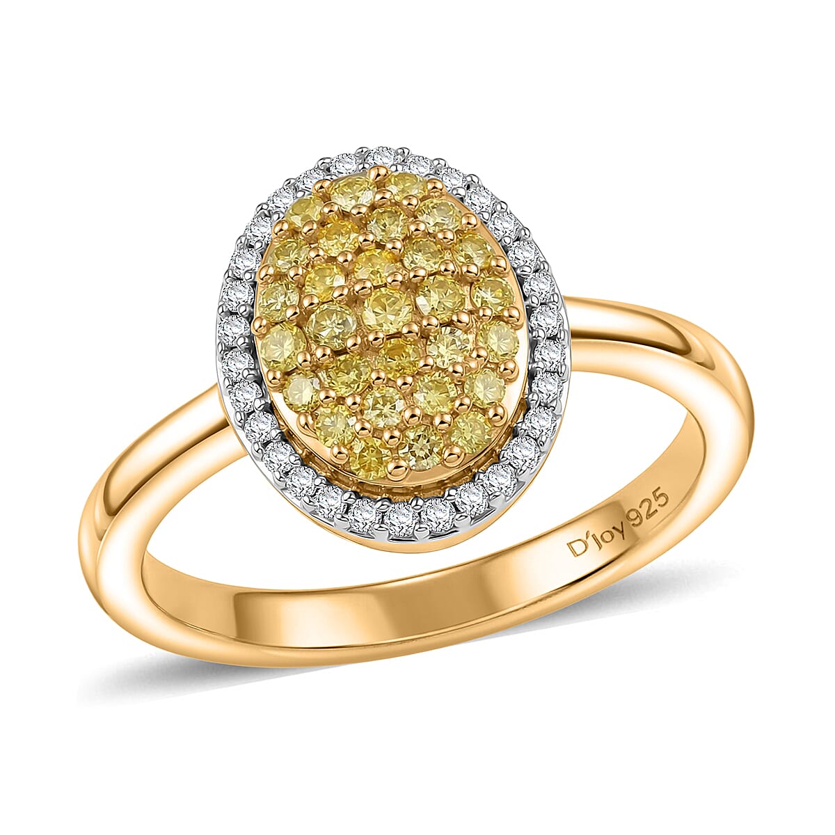 D'Joy Natural Yellow and White Diamond 0.50 ctw Sunburst Halo Ring in 18K Vermeil Yellow Gold Sterling Silver (Size 6.0)