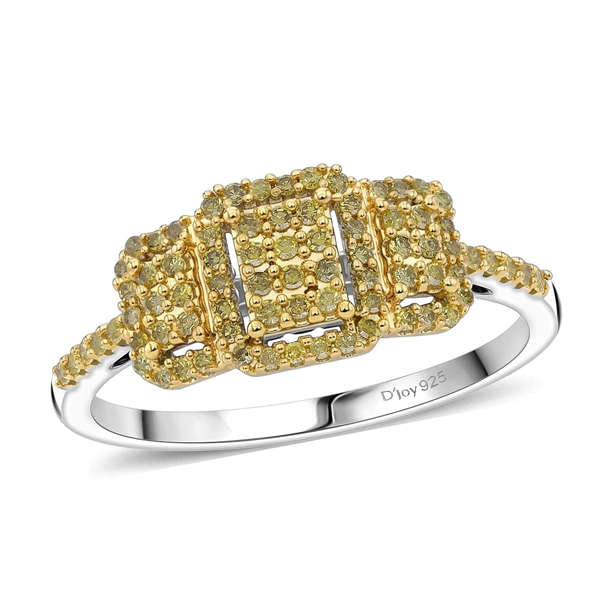D'Joy Natural Yellow Diamond 0.33 ctw Multi-row Cluster Ring in Rhodium Over Sterling Silver (Size 7.0)