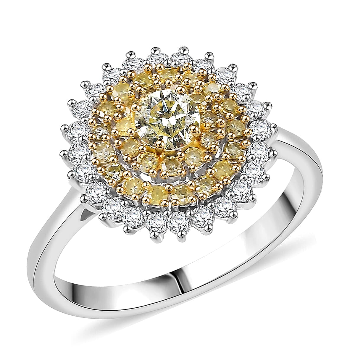 D'Joy Natural Yellow Diamond, White Diamond Floral Ring in Rhodium Over Sterling Silver 1.00 ctw (Size 5.0)
