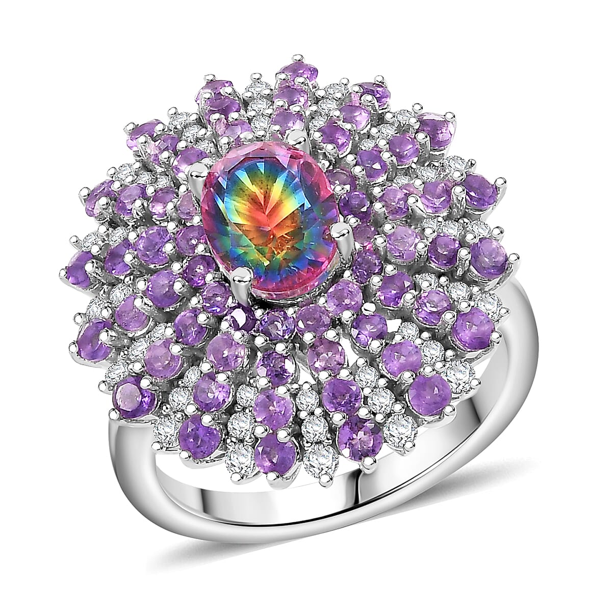 D'Joy Nebula Quartz Doublet and Multi Gemstone 3.40 ctw Galactic Bloom Ring in Rhodium Over Sterling Silver (Size 9.0)