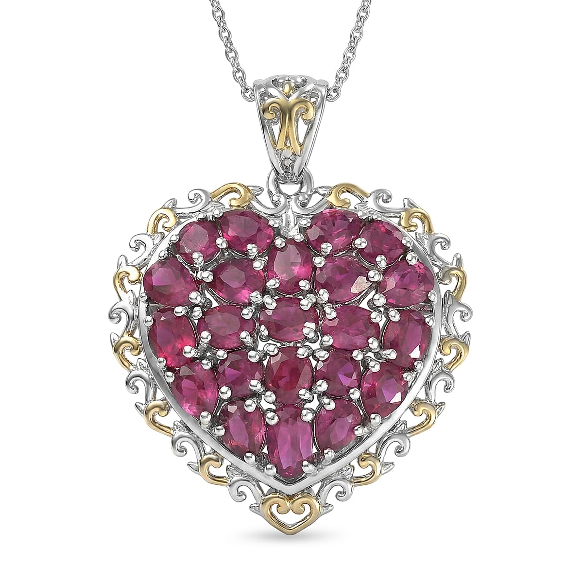 D'Joy Niassa Ruby 4.50 ctw Heart Pendant Necklace in 18K Vermeil YG and Rhodium Over Sterling Silver 20 Inches
