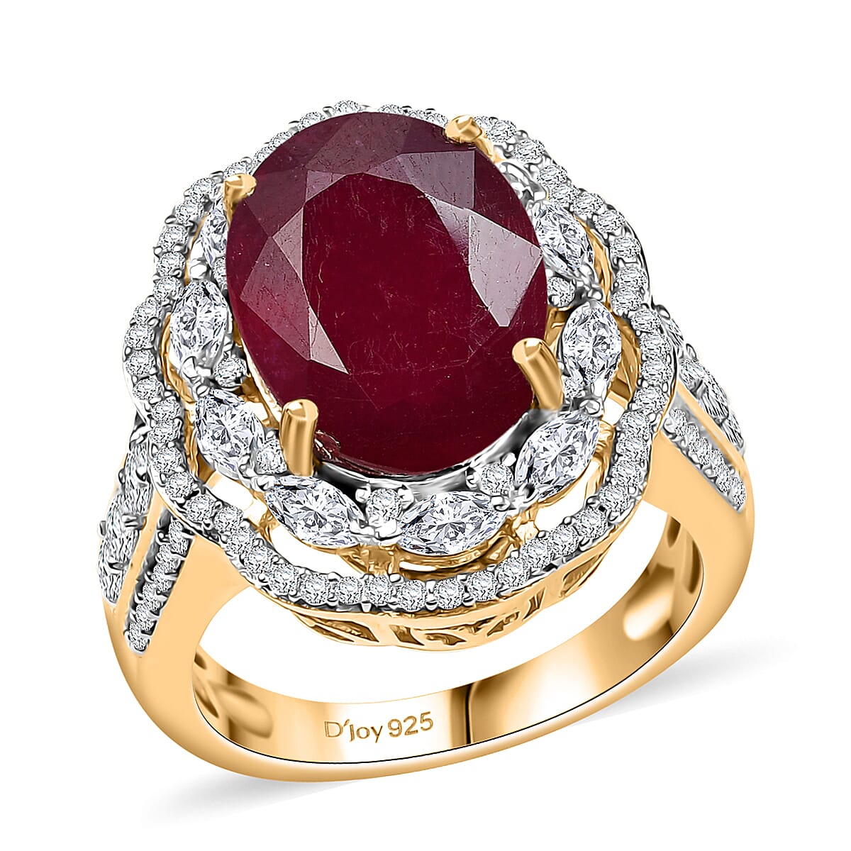 D'Joy Niassa Ruby (FF) and Moissanite 11.40 ctw Crimson Majesty Ring in 18K Vermeil Yellow Gold Over Sterling Silver (Size 5.0)