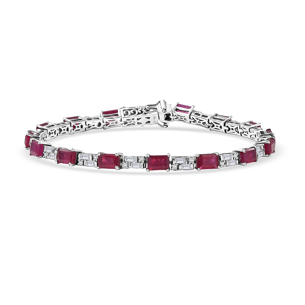 D'Joy Niassa Ruby (FF) and Moissanite 13.90 ctw Bracelet in Rhodium Over Sterling Silver (6.50 In)