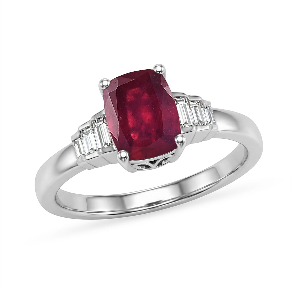 D'Joy Niassa Ruby (FF) and Moissanite 2.60 ctw Ring in Rhodium Over Sterling Silver (Size 6.0)