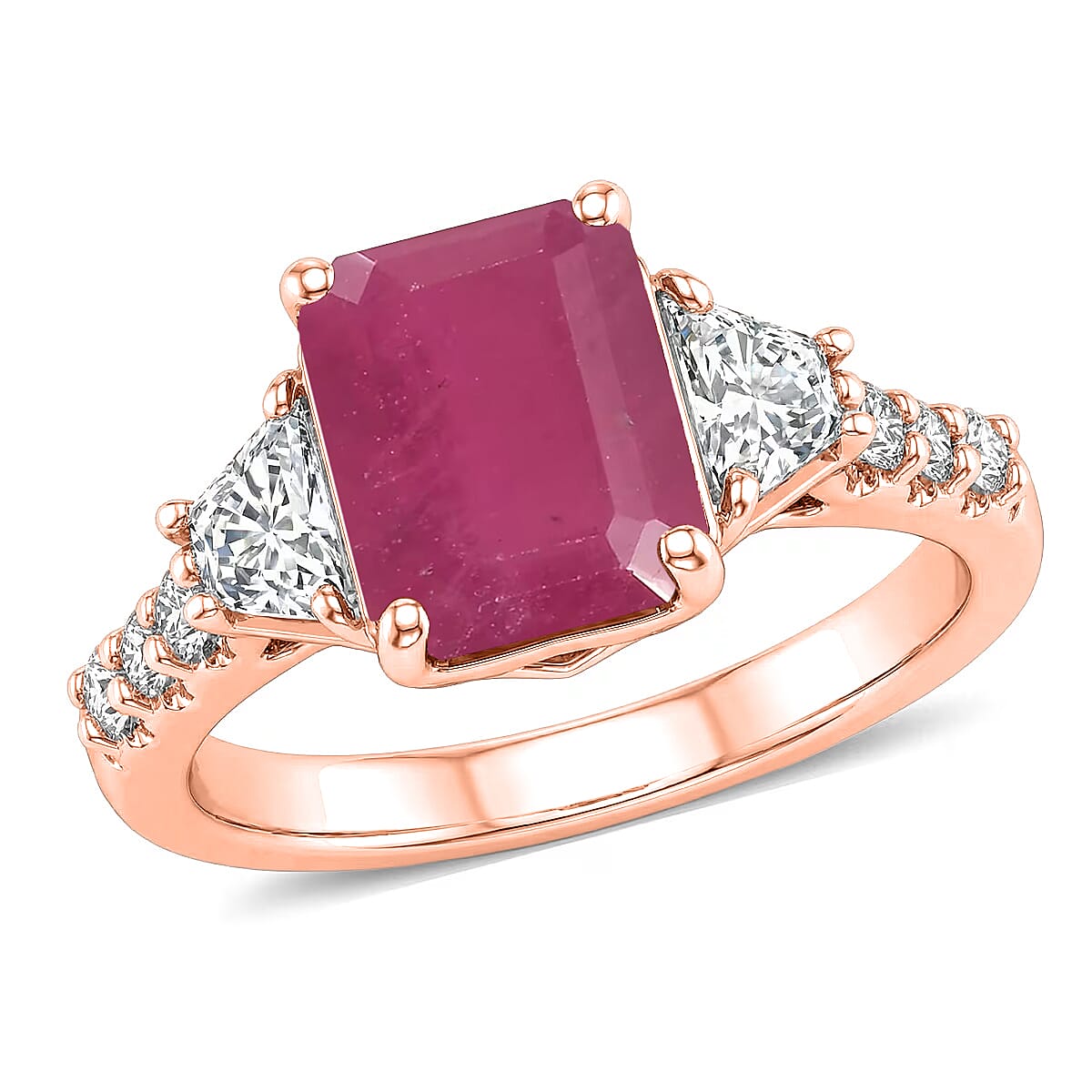 D'Joy Niassa Ruby (FF) and Moissanite 4.40 ctw Ring in 18K Vermeil Rose Gold Over Sterling Silver (Size 4.0)