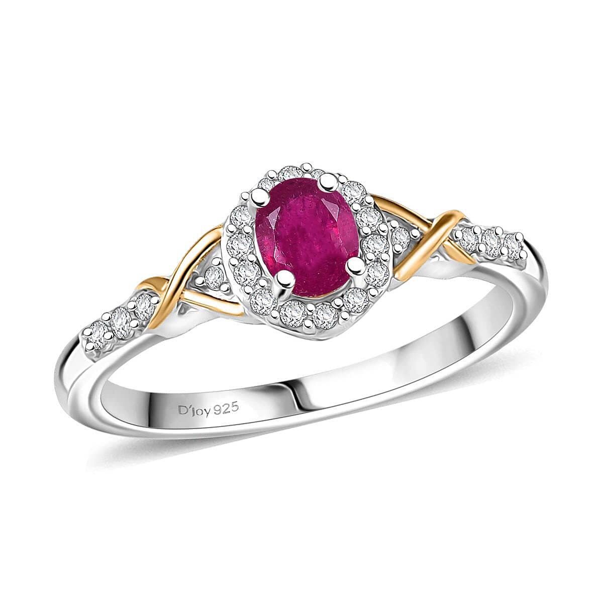 D'Joy Niassa Ruby (FF) and White Zircon 0.85 ctw Ring in 18K Vermeil YG and Rhodium Over Sterling Silver (Size 8.0)