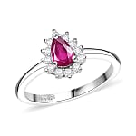 D'Joy Niassa Ruby (FF) and White Zircon 0.85 ctw Ring in Rhodium Over Sterling Silver (Size 5.0)
