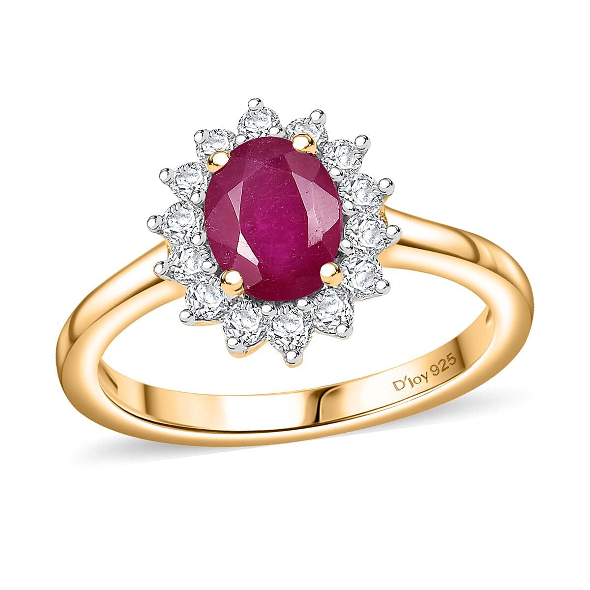 D'Joy Niassa Ruby (FF) and White Zircon 1.65 ctw Ring in 18K Vermeil Yellow Gold Over Sterling Silver (Size 10.0)