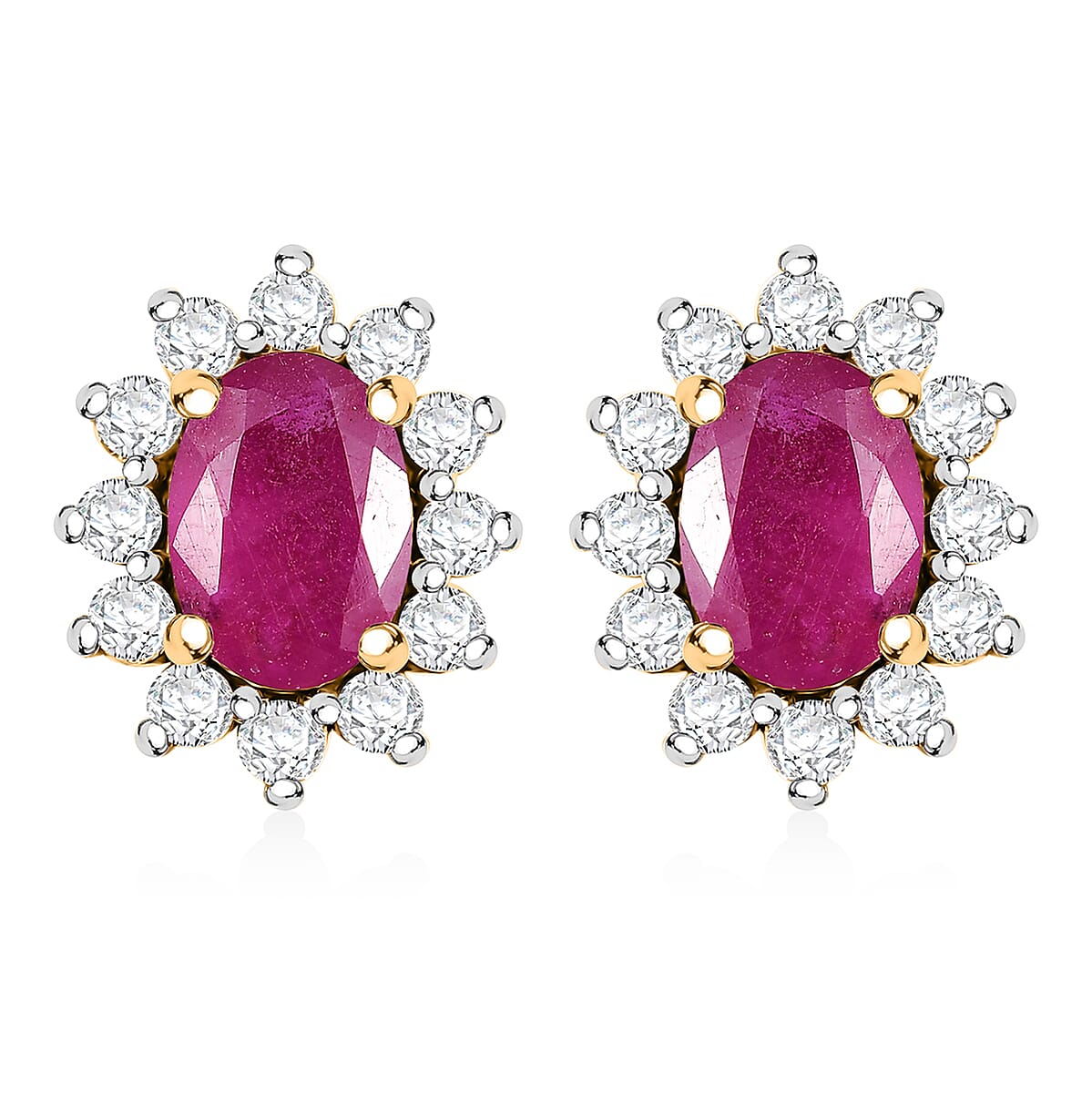 D'Joy Niassa Ruby (FF) and White Zircon 3.20 ctw Sunburst Stud Earrings in 18K Vermeil Yellow Gold Over Sterling Silver
