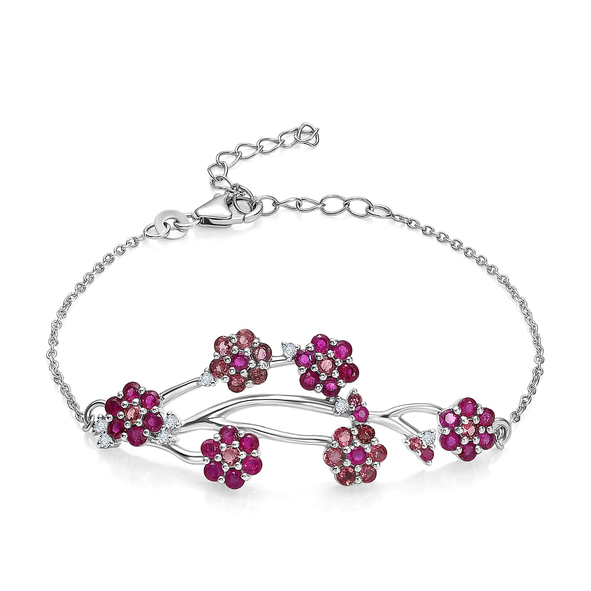 D'Joy Niassa Ruby (FF), Pink Tourmaline and White Zircon 4.20 ctw Bracelet in Rhodium Over Sterling Silver (6.5-8.5In)
