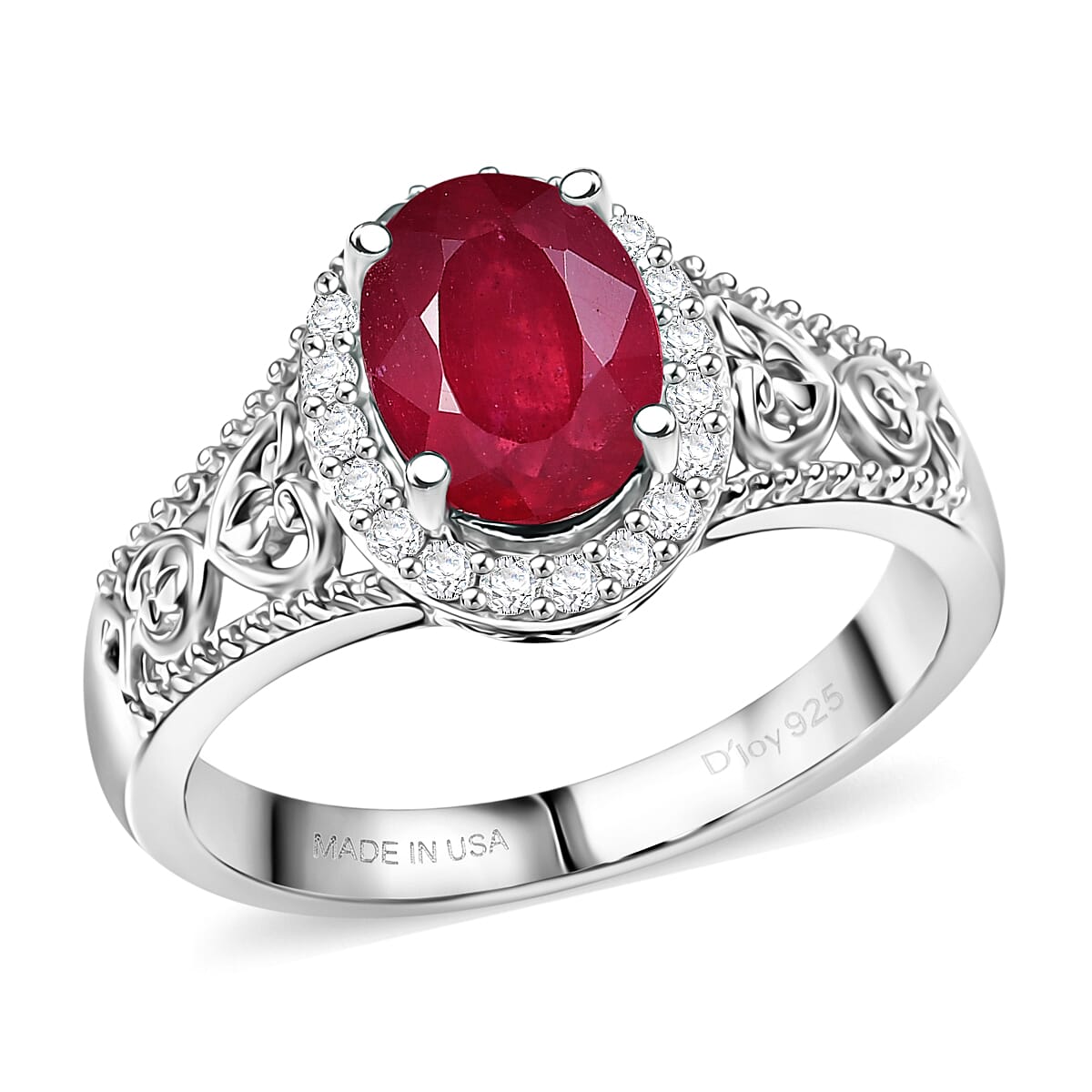 D'Joy Niassa Ruby (FF), White Zircon Ring in Platinum Over Sterling Silver (Size 10.0) 2.10 ctw