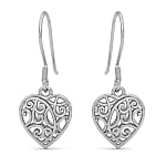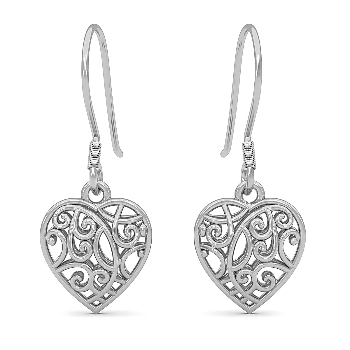 D'Joy Openwork Drop Dangle Earrings in Platinum Plated Sterling Silver, Filigree Heart Earrings, Dangle Silver Earrings For Women