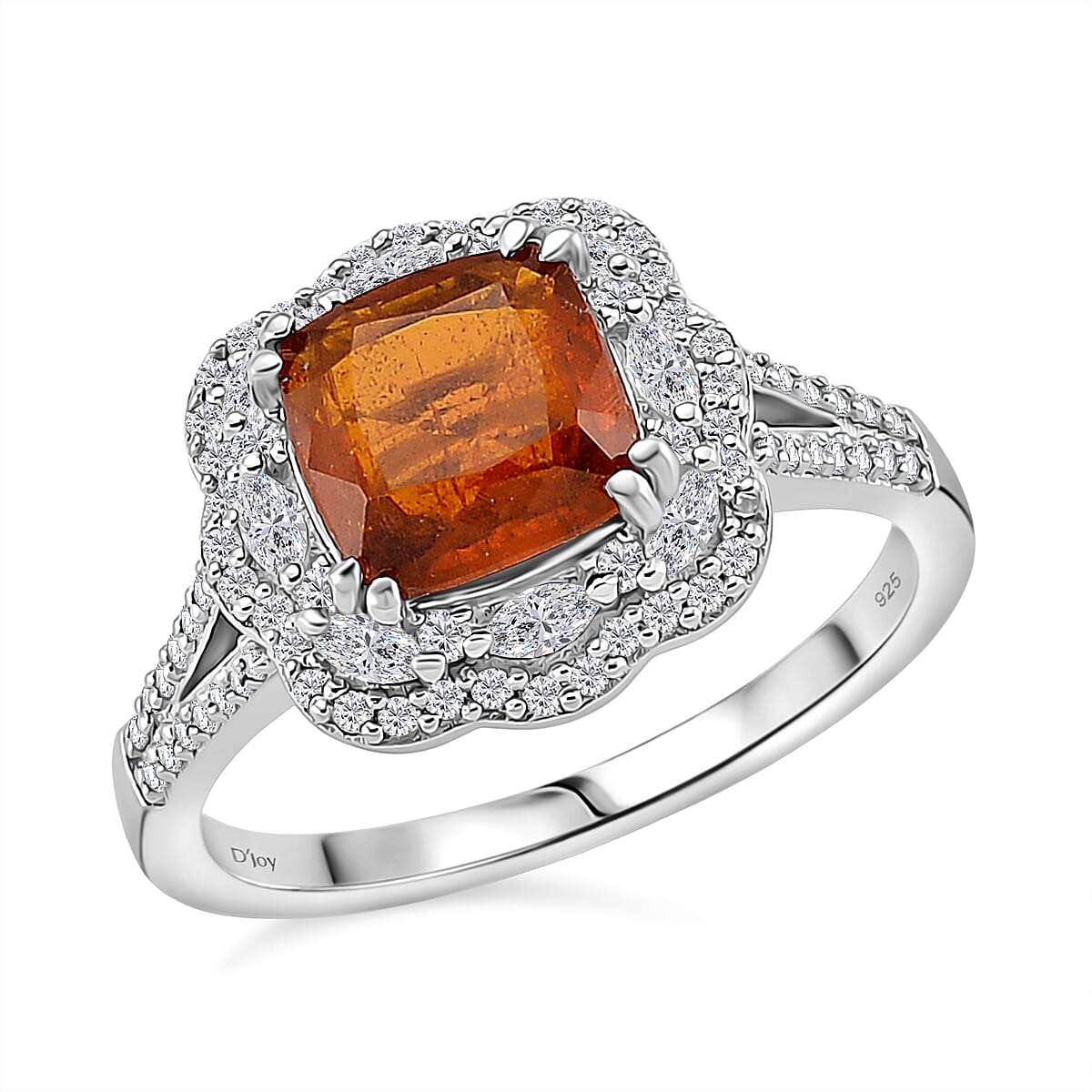 D'Joy Orange Kyanite and White Zircon 3.60 ctw Royal Blossom Halo Ring in Rhodium Over Sterling Silver (Size 9.0)