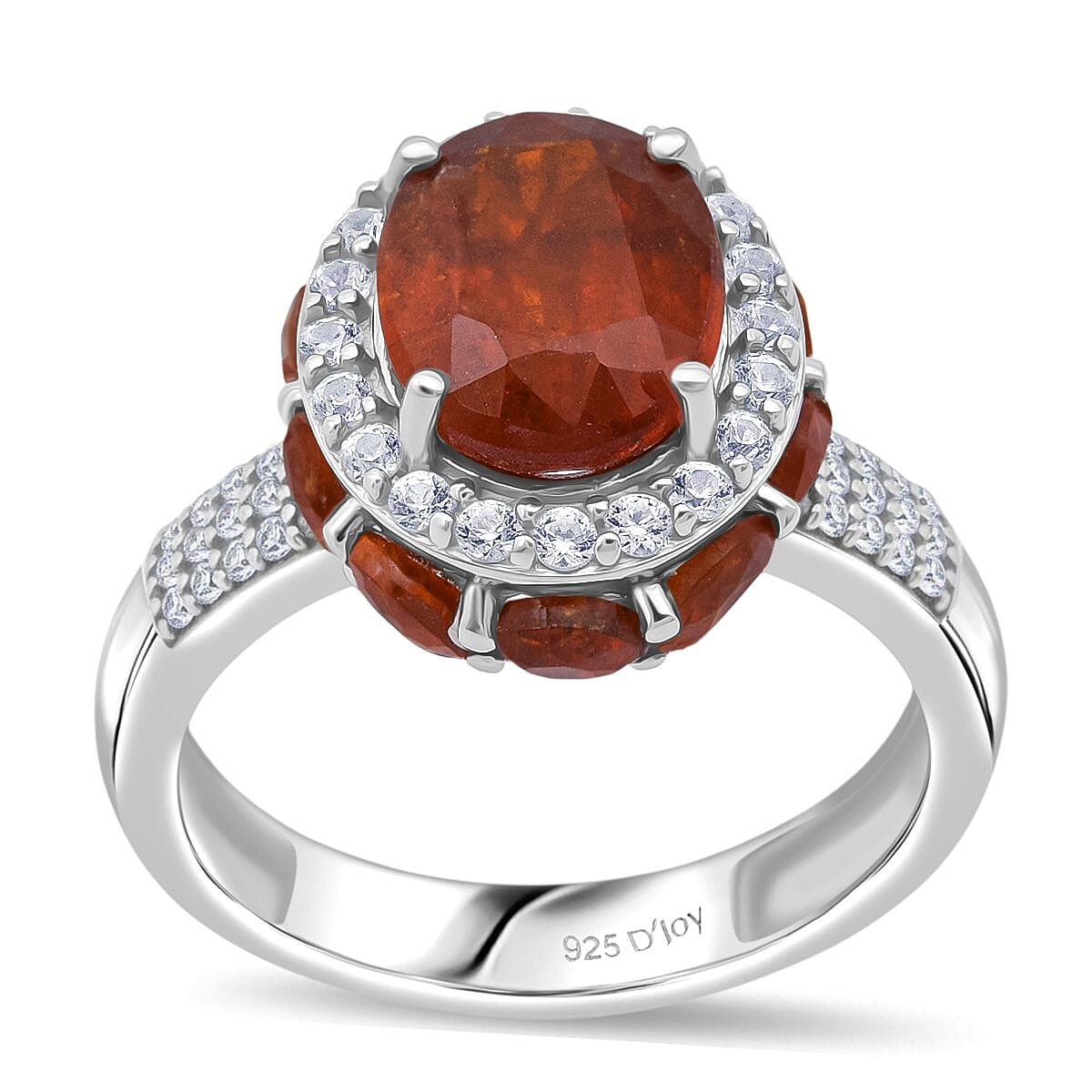 D'Joy Orange Kyanite and White Zircon 6.50 ctw Royal Azure Crest Ring in Rhodium Over Sterling Silver (Size 10.0) (Del. in 7-10 Days)