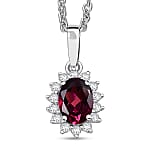 D'Joy Orissa Rhodolite Garnet and White Zircon 0.80 ctw Pendant Necklace in Rhodium Over Sterling Silver 20 Inches