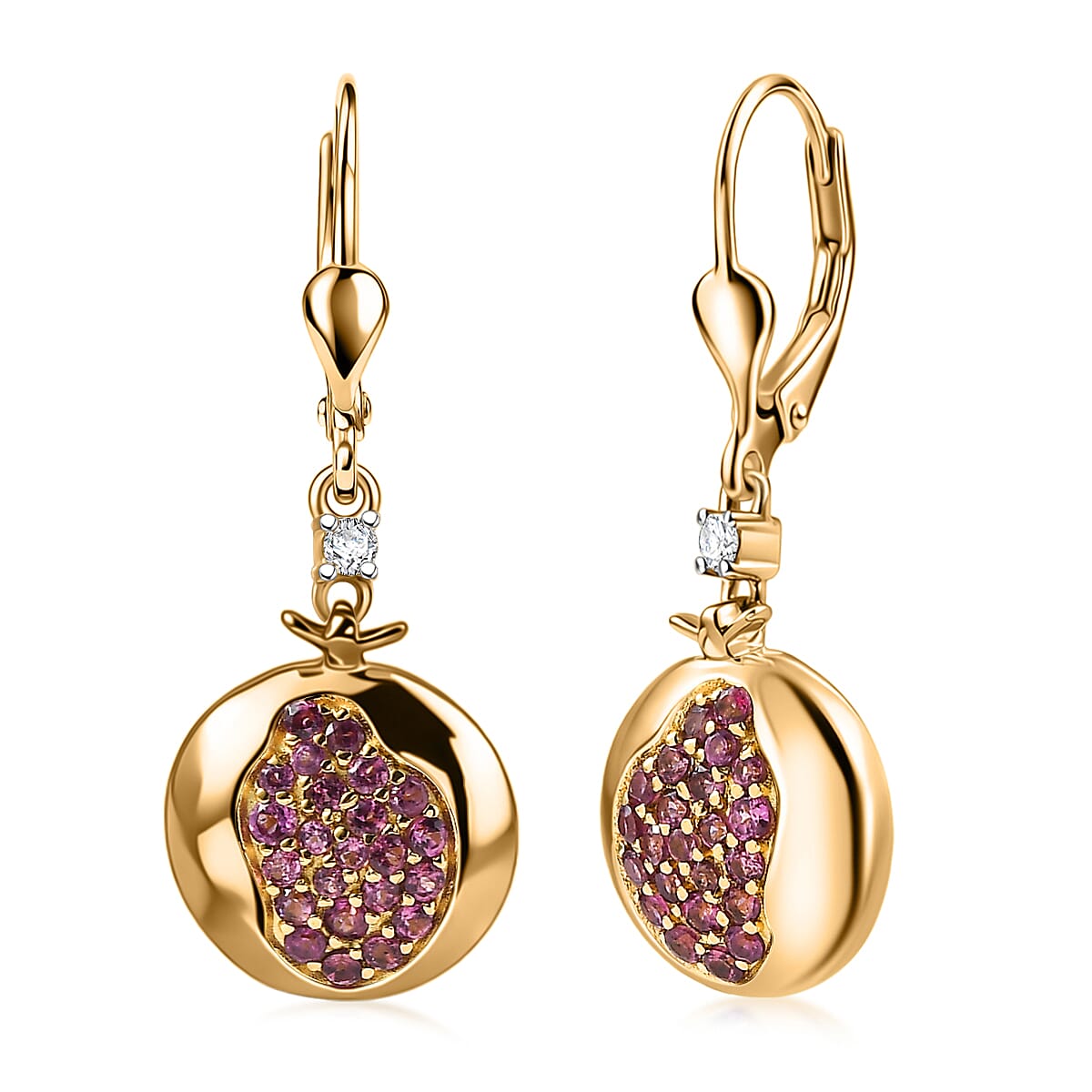 D'Joy Orissa Rhodolite Garnet and White Zircon 1.10 ctw Earrings in 18K Vermeil Yellow Gold Over Sterling Silver