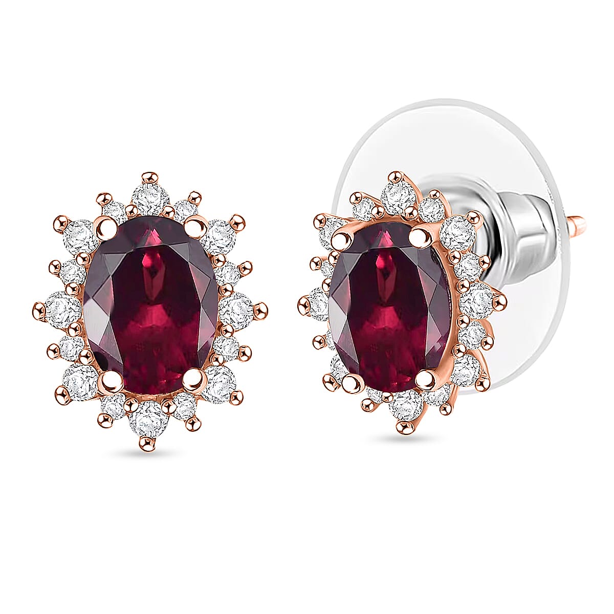 D'Joy Orissa Rhodolite Garnet and White Zircon 2.86 ctw Earrings in 18K Vermeil Rose Gold Over Sterling Silver