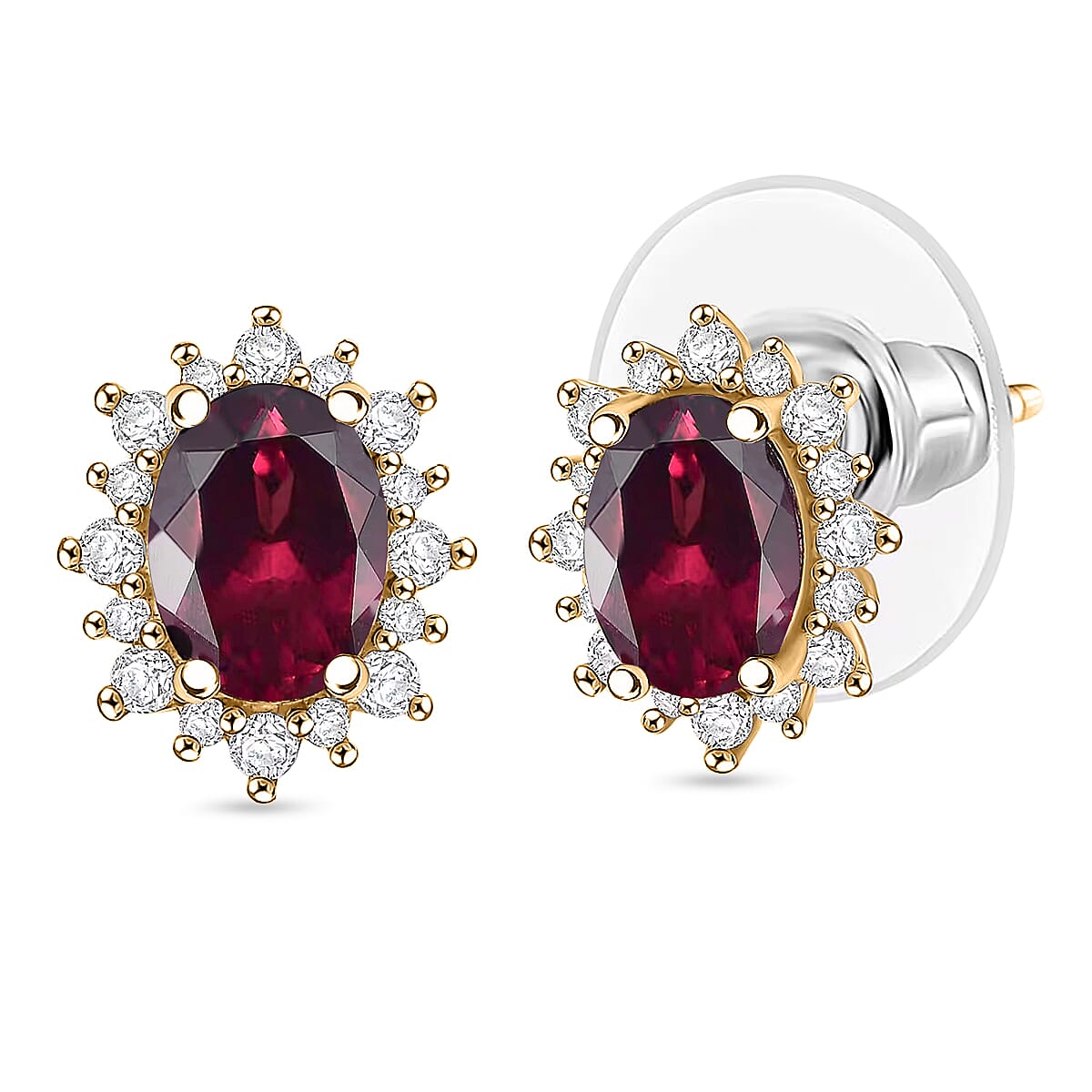 D'Joy Orissa Rhodolite Garnet and White Zircon 2.86 ctw Earrings in 18K Vermeil Yellow Gold Over Sterling Silver