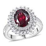 D'Joy Orissa Rhodolite Garnet, Moissanite Starburst Ring in Rhodium Over Sterling Silver 4.00 ctw (Size 7.0)