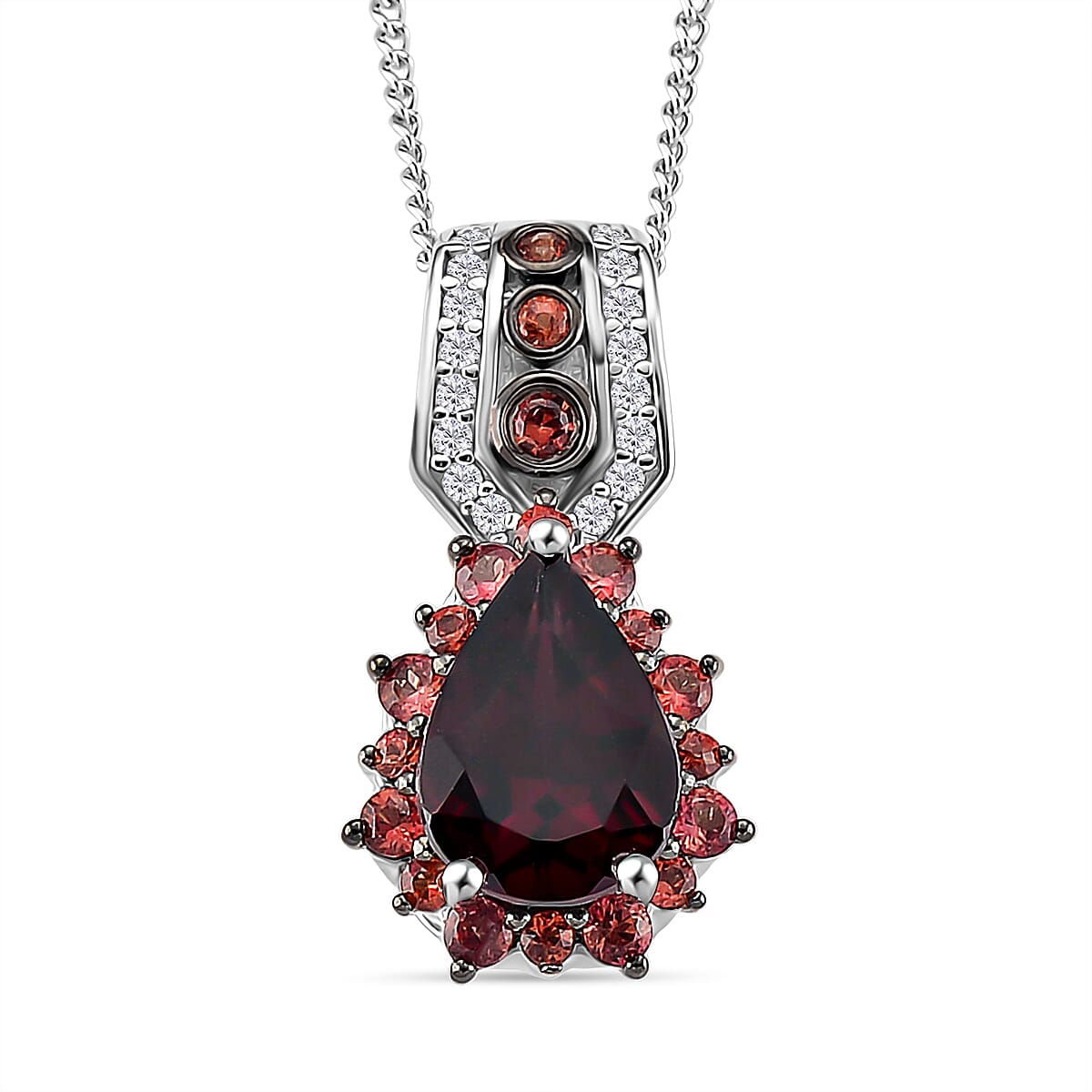 D'Joy Orissa Rhodolite Garnet, Multi Gemstone Pendant Necklace in Rhodium Over Sterling Silver 2.60 ctw (18 Inches)
