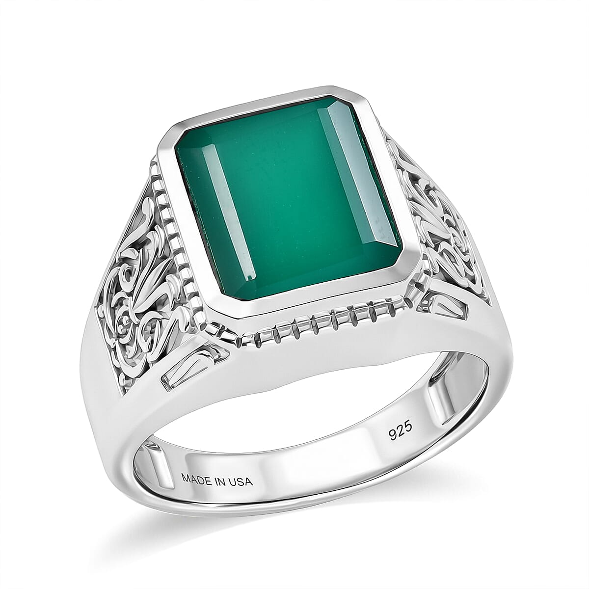 D'Joy Passport to Israel Artisan Crafted Green Onyx 5.35 ctw Men's Ring in Sterling Silver (Size 10.0)