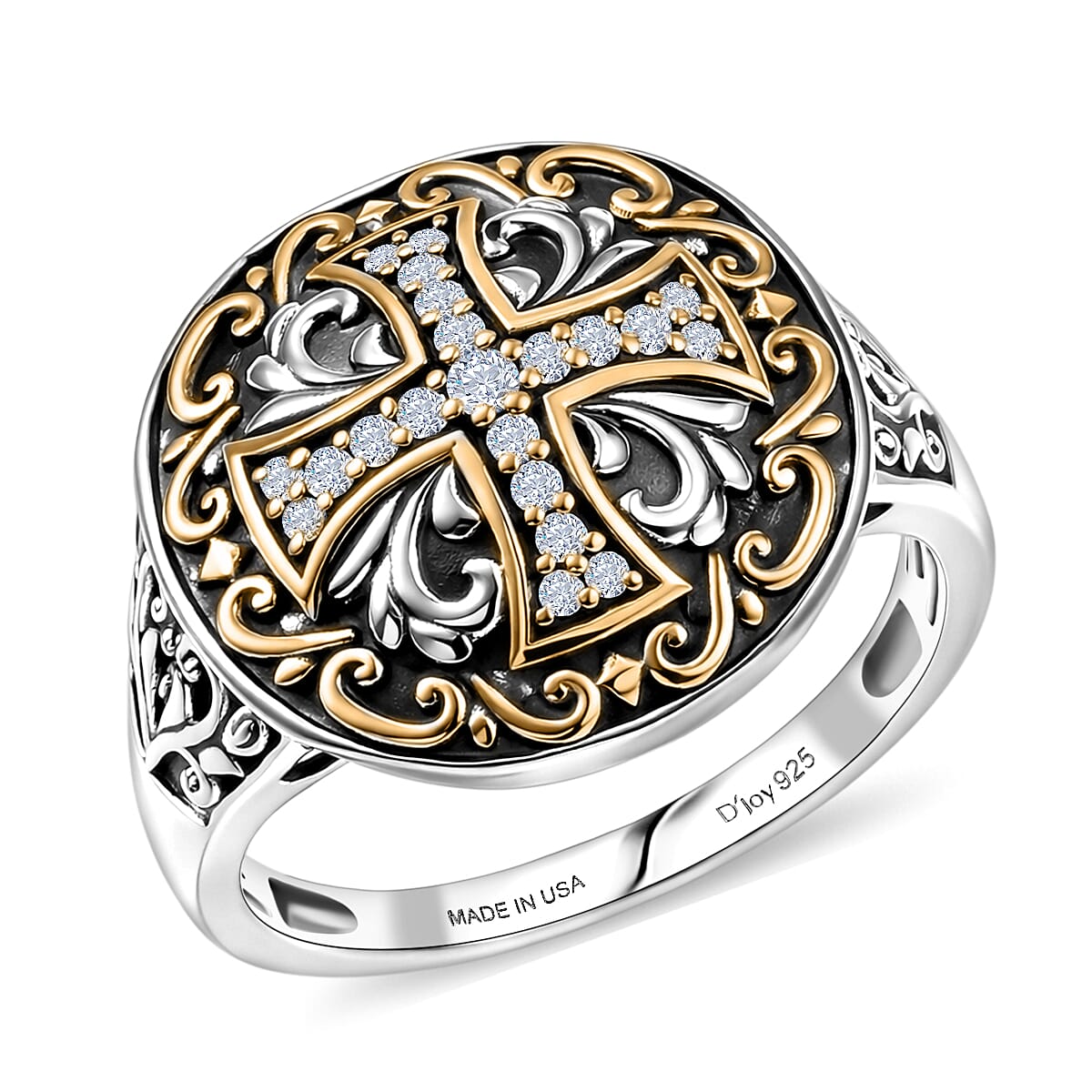 D'Joy Passport to Israel Artisan Crafted White Zircon Men's Ring in 18K YG Plated and Sterling Silver (Size 10.0) 0.30 ctw