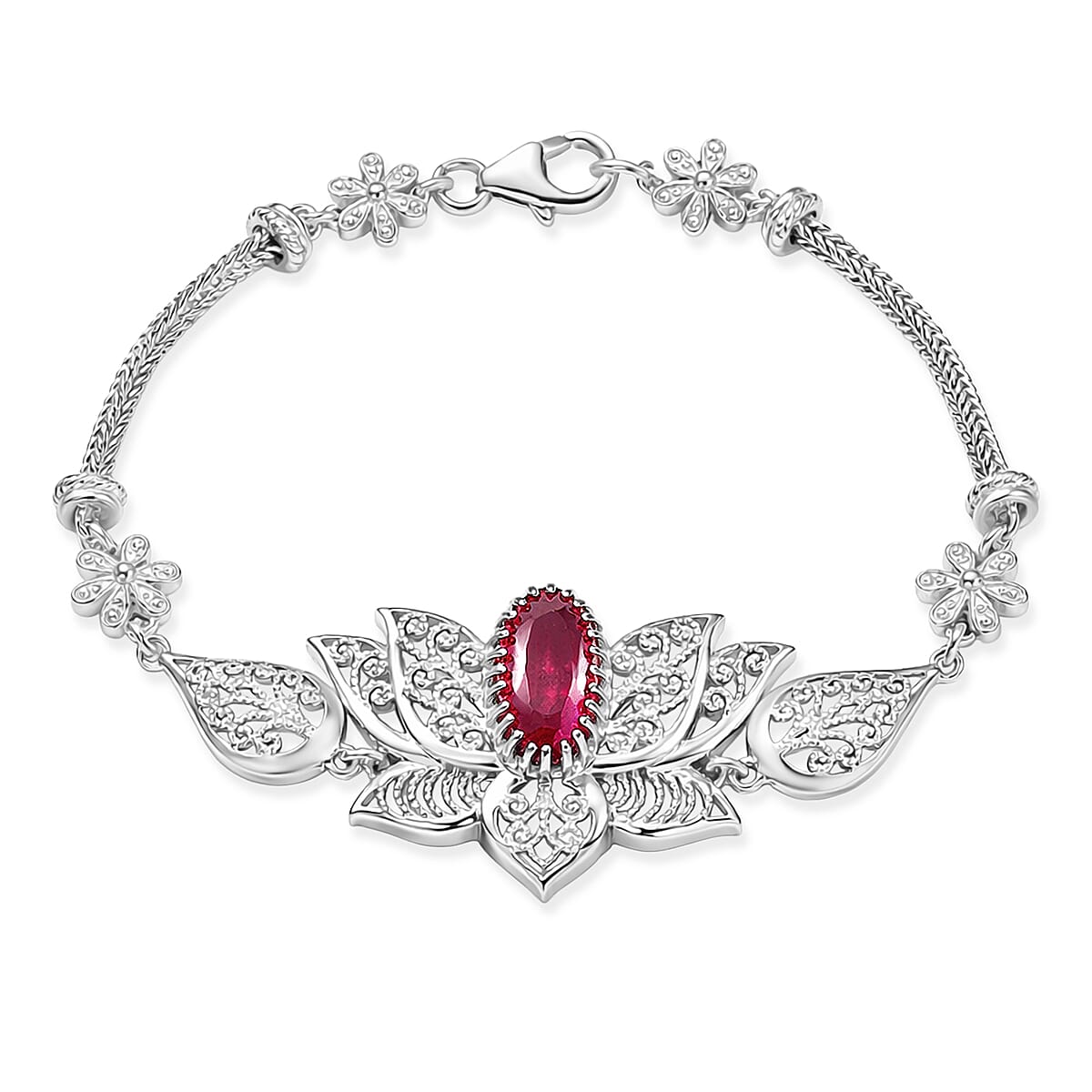 D'Joy Passport to Turkey Premium Niassa Ruby (FF) 2.80 ctw Bracelet in Rhodium Over Sterling Silver (6.50 In)