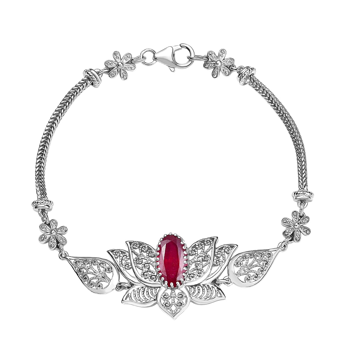 D'Joy Passport to Turkey Premium Niassa Ruby (FF) 2.80 ctw Bracelet in Rhodium Over Sterling Silver (7.25 In)