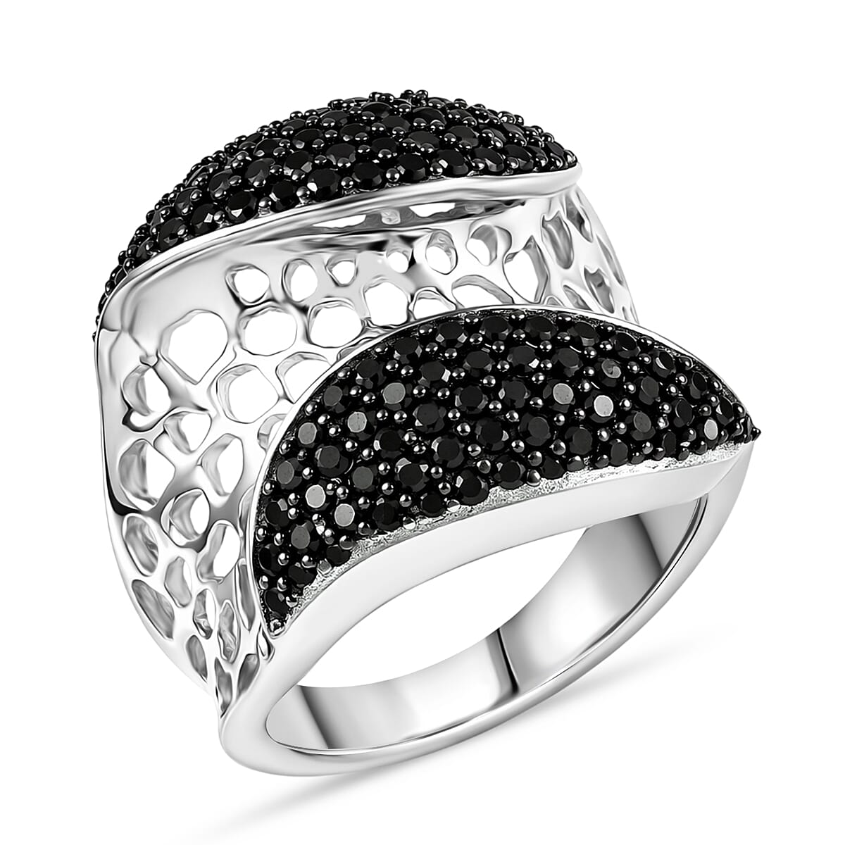 D'Joy Passport to Turkey Thai Black Spinel 1.20 ctw Ring in Rhodium Over Sterling Silver (Size 9) 1.