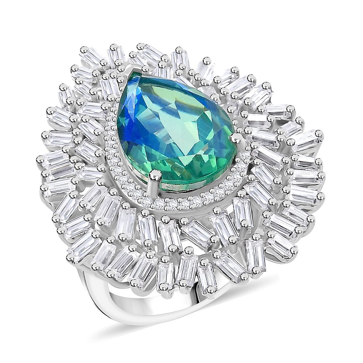 D'Joy Peacock Quartz (Triplet) and Moissanite 8.25 ctw White Peacock Feather Ring in Rhodium Over Sterling Silver (Size 9.0)