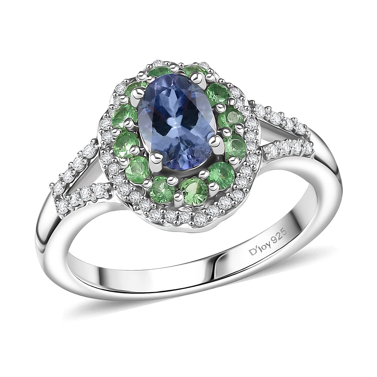 D'Joy Peacock Tanzanite and Multi Gemstone 1.50 ctw Blooming Flower Ring in Rhodium Over Sterling Silver (Size 8.0)