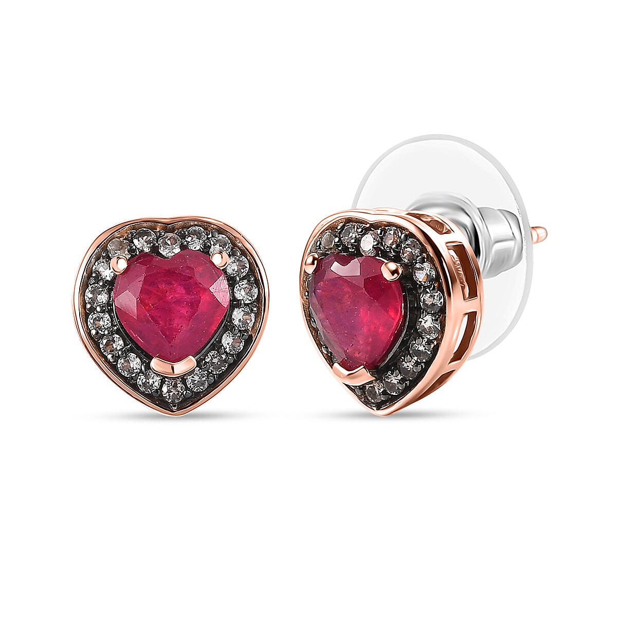 D'Joy Pemium Niassa Ruby (FF) and Champagne Zircon 2.85 ctw Bloodline Heart Earrings in 18K Vermeil Rose Gold Over Sterling Silver
