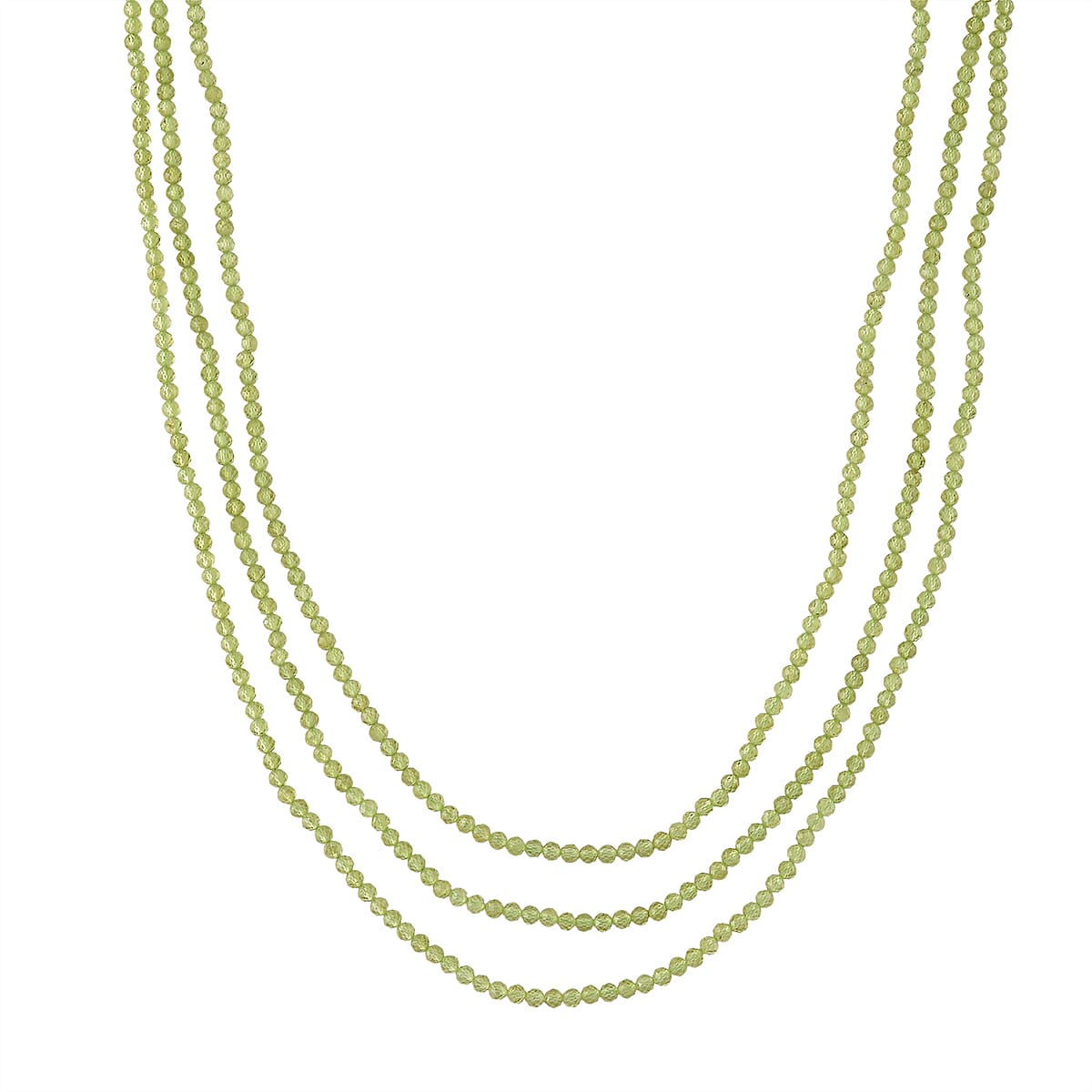 D'Joy Peridot 110.00 ctw Beaded 3 Row Necklace in Rhodium Over Sterling Silver (18-20-22 Inches)