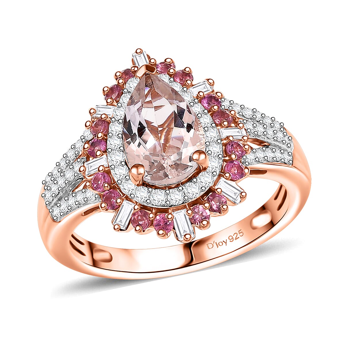 D'Joy Pink Morganite and Multi Gemstone 2.00 ctw Ring in 18K Vermeil Rose Gold Over Sterling Silver (Size 6.0)
