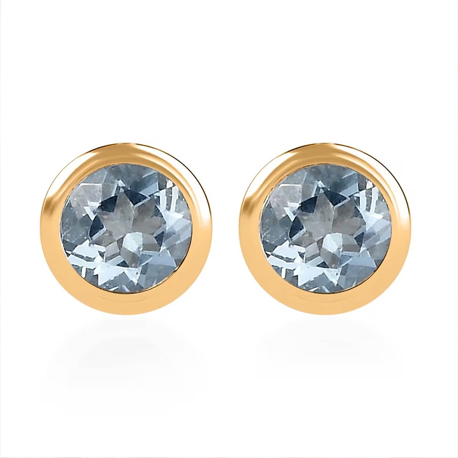 D'Joy Poke Free Aquamarine 0.50 ctw Stud Earrings in 18K Vermeil Yellow Gold Over Sterling Silver