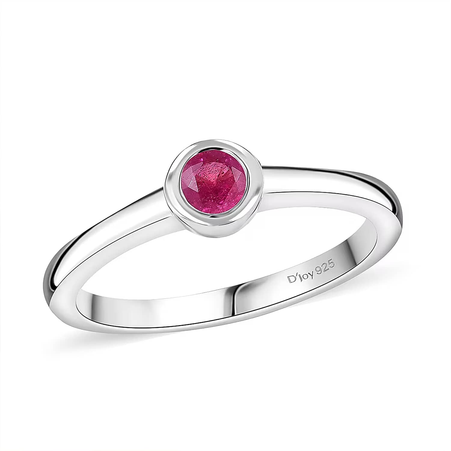 D'Joy Poke Free Niassa Ruby Solitaire Ring in Rhodium Over Sterling Silver 0.35 ctw (Size 10.0)