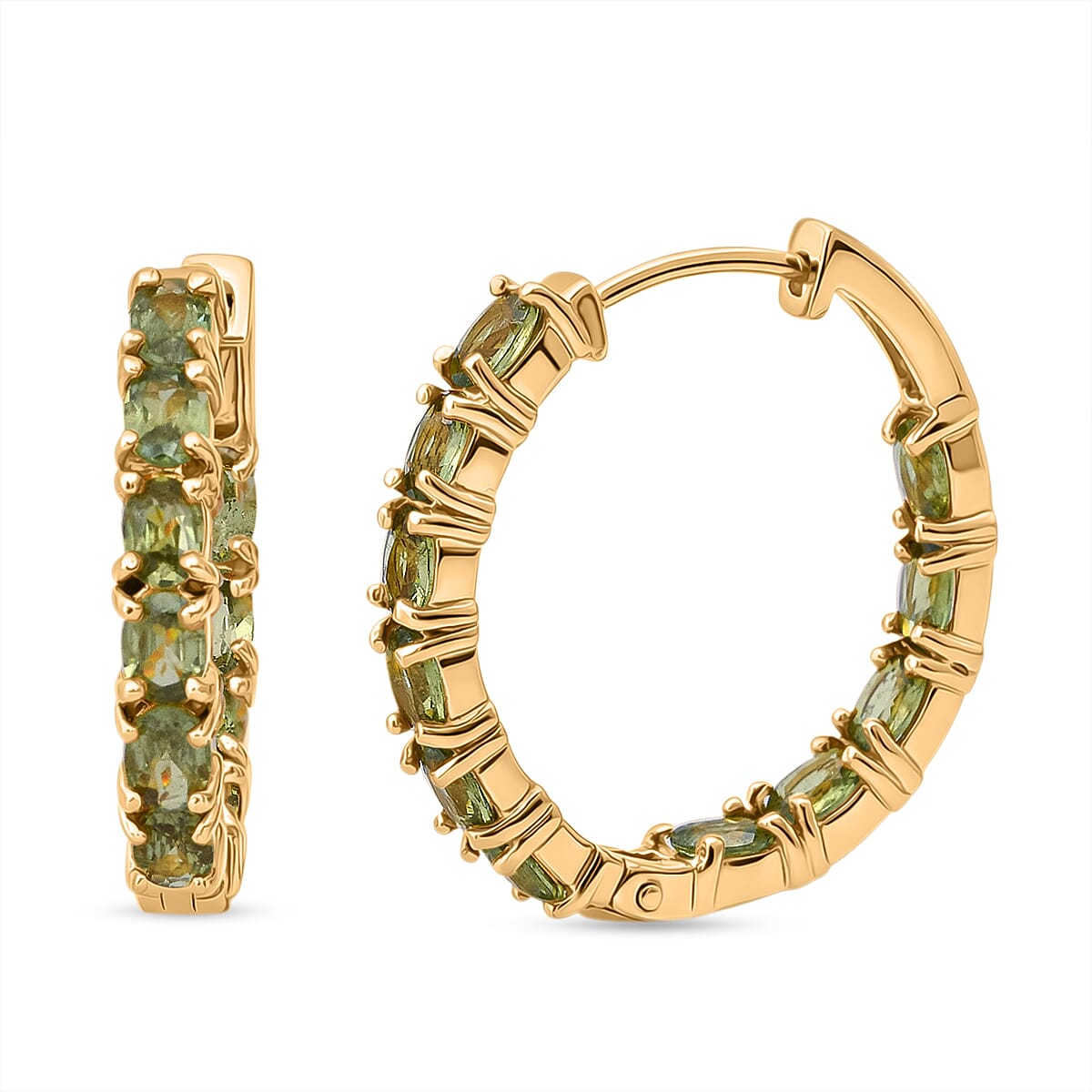D'Joy Premium Ambanja Demantoid Garnet 5.10 ctw Greenfire Tennis Hoop Earrings in 18K Vermeil Yellow Gold Over Sterling Silver (Del. in 8-10 Days)