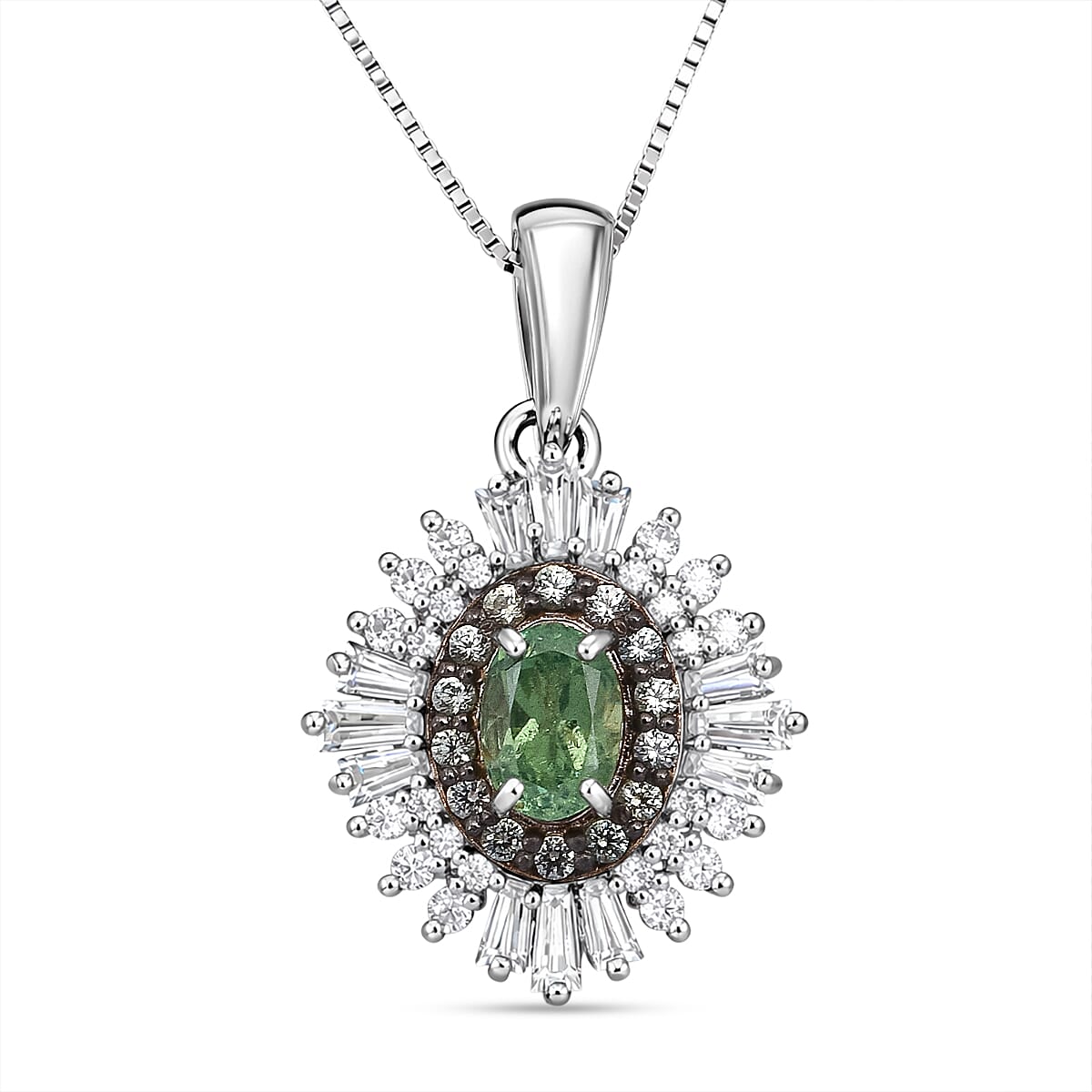 D'Joy Premium Ambanja Demantoid Garnet and Multi Gemstone 1.30 ctw Woodland Spark Halo Pendant Necklace in Rhodium Over Sterling Silver 20 Inches