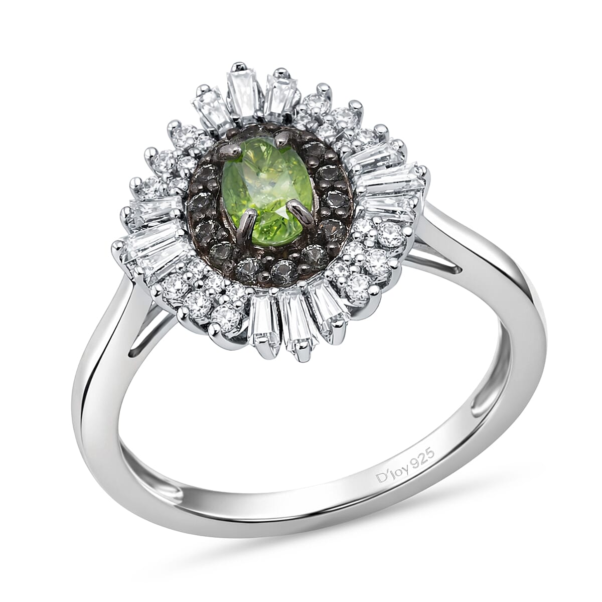 D'Joy Premium Ambanja Demantoid Garnet and Multi Gemstone 1.30 ctw Woodland Spark Halo Ring in Rhodium Over Sterling Silver (Size 10.0)