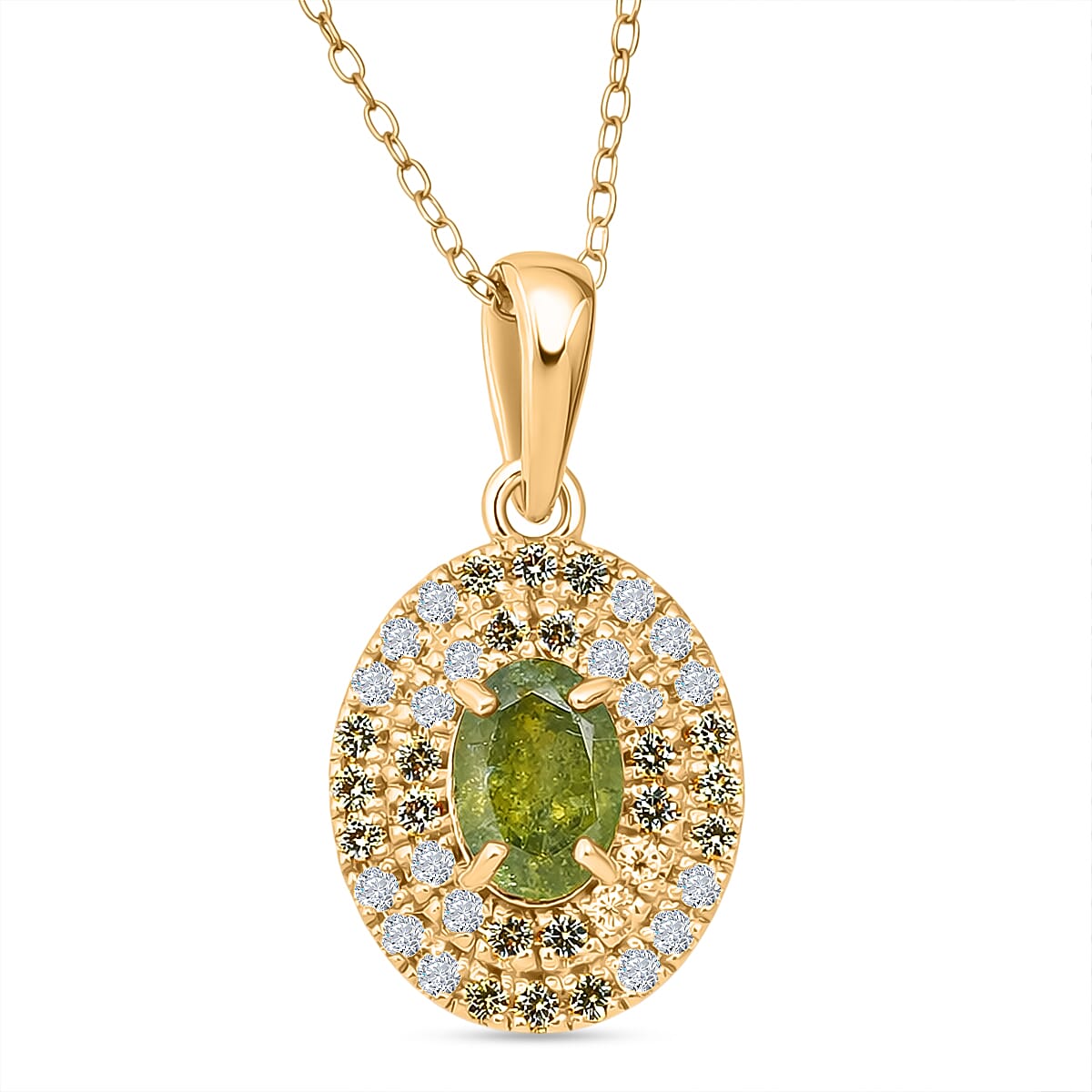 D'Joy Premium Ambanja Demantoid Garnet and Multi Gemstone 1.50 ctw Evergreen Flame Halo Pendant Necklace in 18K Vermeil Yellow Gold Over Sterling Silver 20 Inches