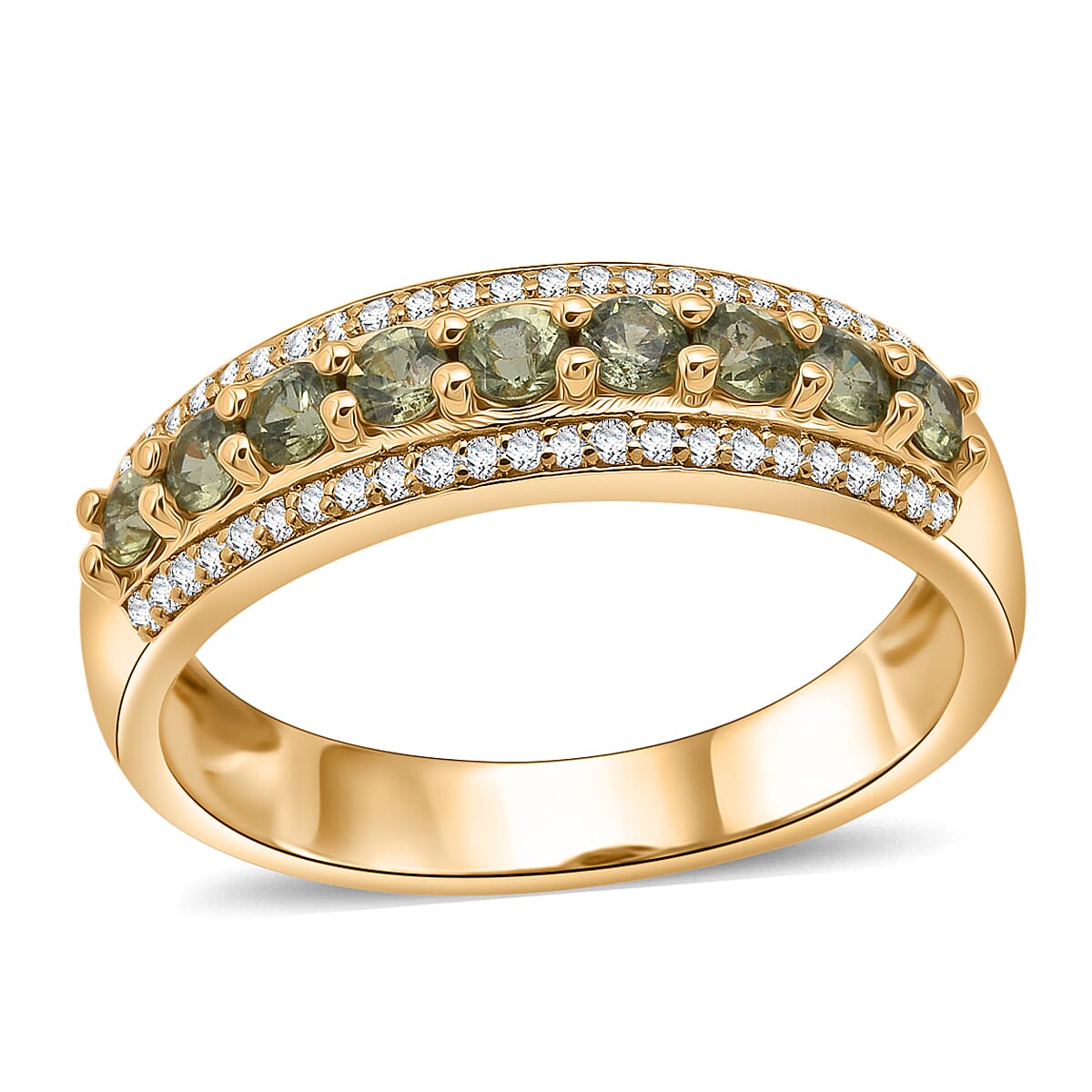 D'Joy Premium Ambanja Demantoid Garnet and White Zircon 0.90 ctw Woodland Spark Band Ring in 18K Vermeil Yellow Gold Over Sterling Silver (Size 7.0)