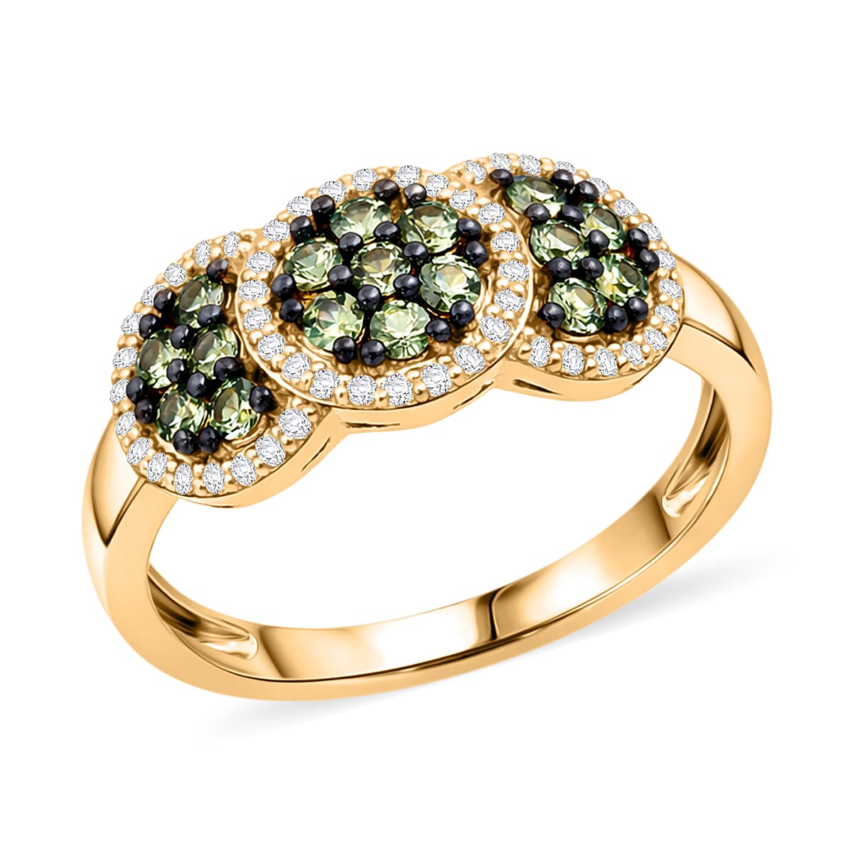 D'Joy Premium Ambanja Demantoid Garnet and White Zircon 1.00 ctw Greenfire Mosaic Ring in 18K Vermeil Yellow Gold Over Sterling Silver (Size 10.0)