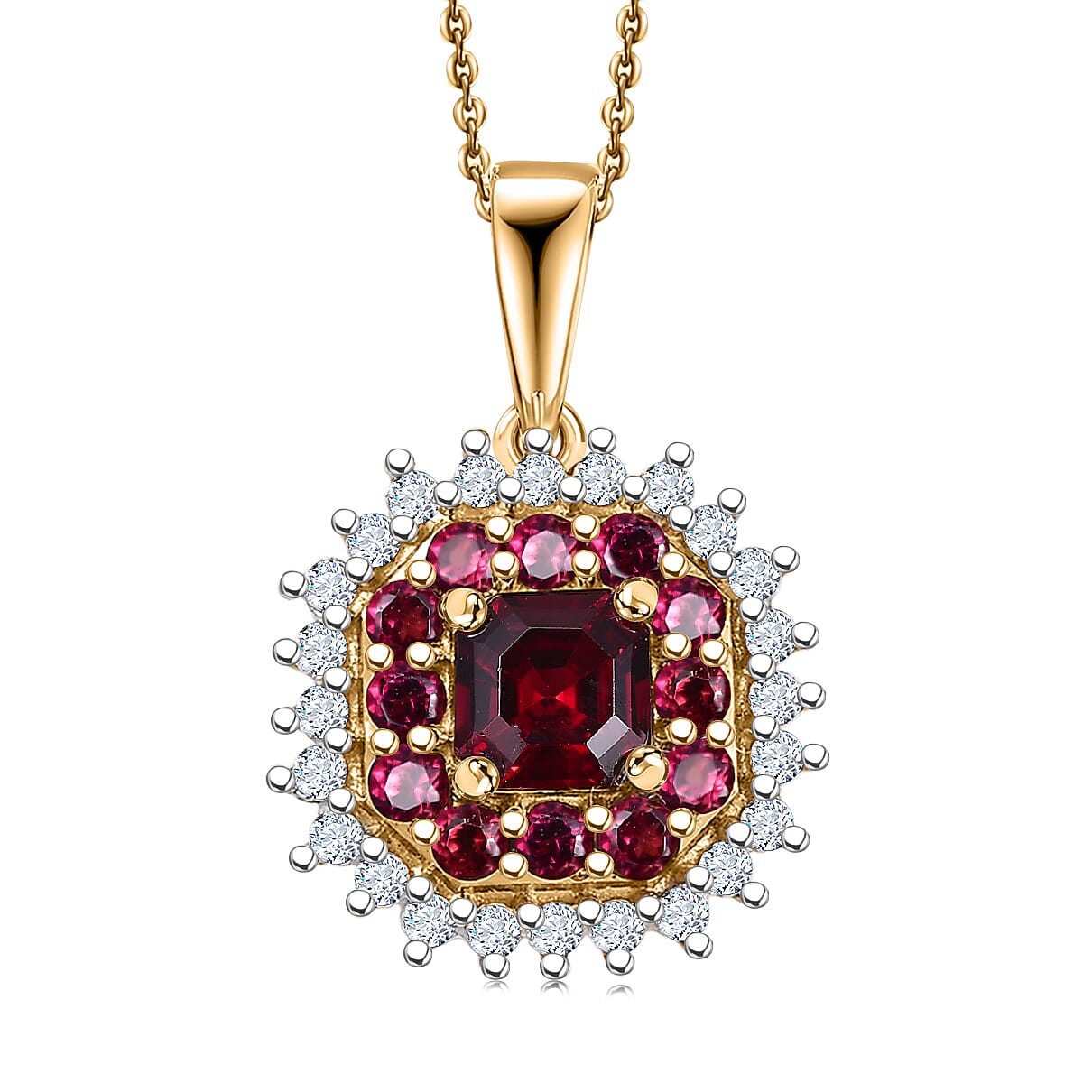 D'Joy Premium Anthill Garnet and Moissanite 1.15 ctw Crimson Core Pendant Necklace 20 Inches in 18K Vermeil Yellow Gold Over Sterling Silver (Del. in 5-7 Days)